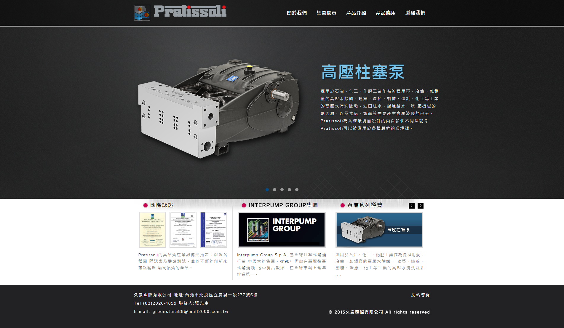 來自於全球柱塞式幫浦行業中最大的集團 Interpump Group S.p.A. Interpump Group經過長久以來不斷的努力,在90年代就已在高壓柱塞式幫浦領域中獨占鰲頭,在全球市場上排名第一。 而其旗下的Pratissoli高壓水泵更是在1947年起就可在各行各業中看到他的身影。 柱塞式幫浦的應用範圍十分廣泛,從石化業到紡織業,從建築業到環保業都有它的一席之地。 而Pratissoli高壓水泵更是在各行各業中以高品質而聞名。